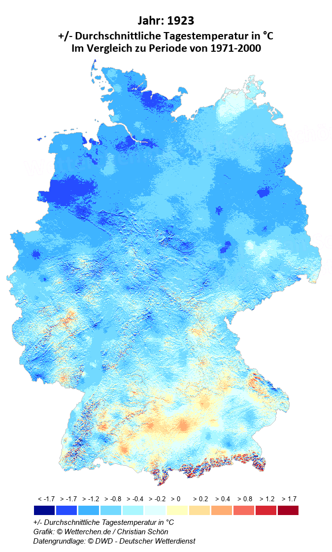1923 - +/- Durchschnittliche Tagestemperatur in °C