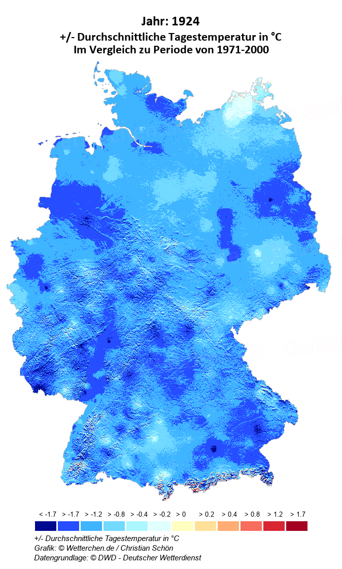 1924 - +/- Durchschnittliche Tagestemperatur in °C