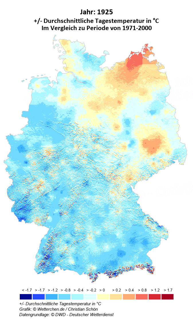 1925 - +/- Durchschnittliche Tagestemperatur in °C