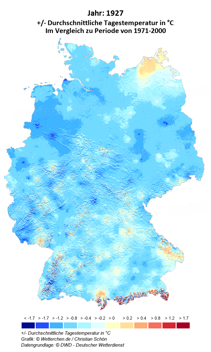 1927 - +/- Durchschnittliche Tagestemperatur in °C