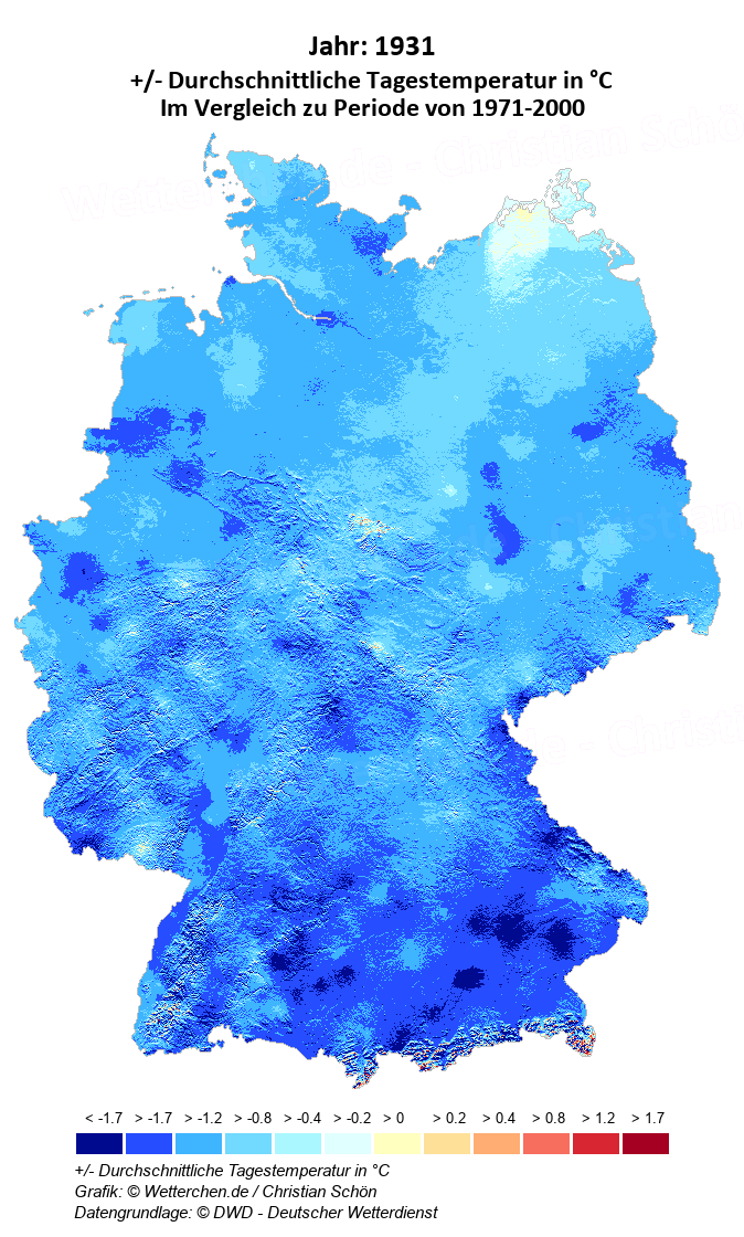 1931 - +/- Durchschnittliche Tagestemperatur in °C