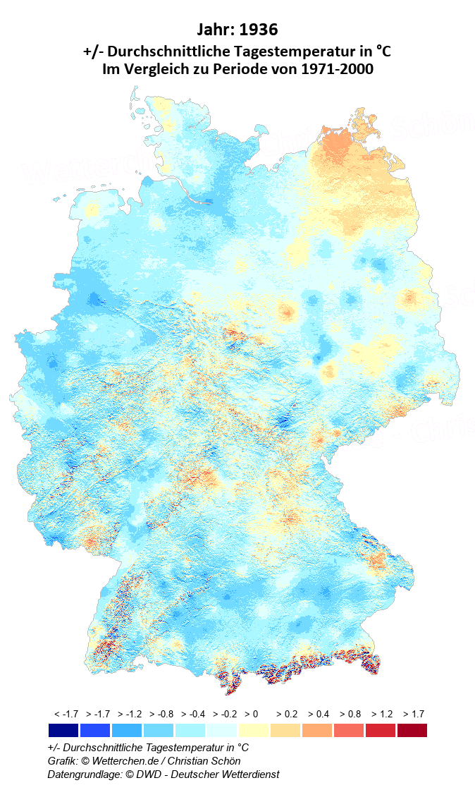 1936 - +/- Durchschnittliche Tagestemperatur in °C