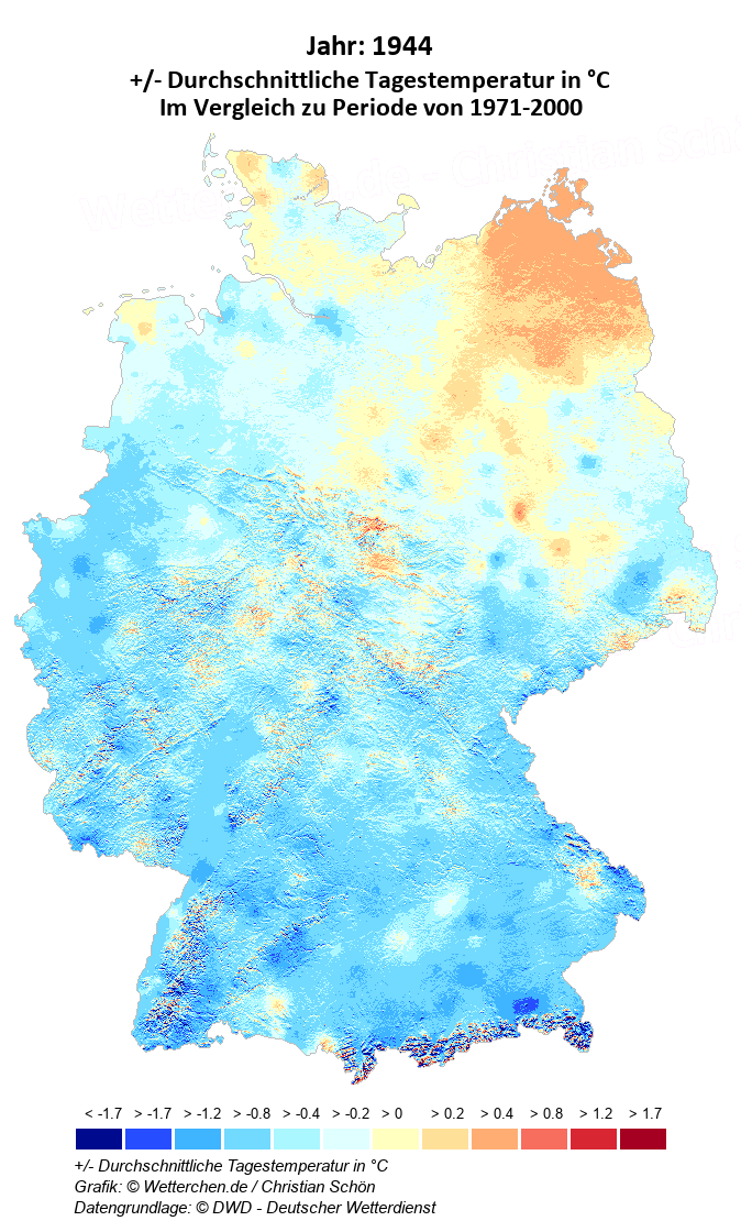 1944 - +/- Durchschnittliche Tagestemperatur in °C