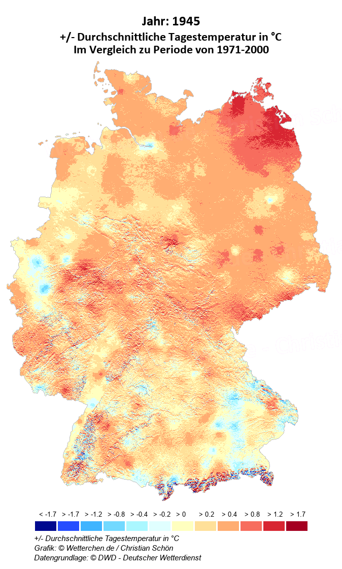 1945 - +/- Durchschnittliche Tagestemperatur in °C