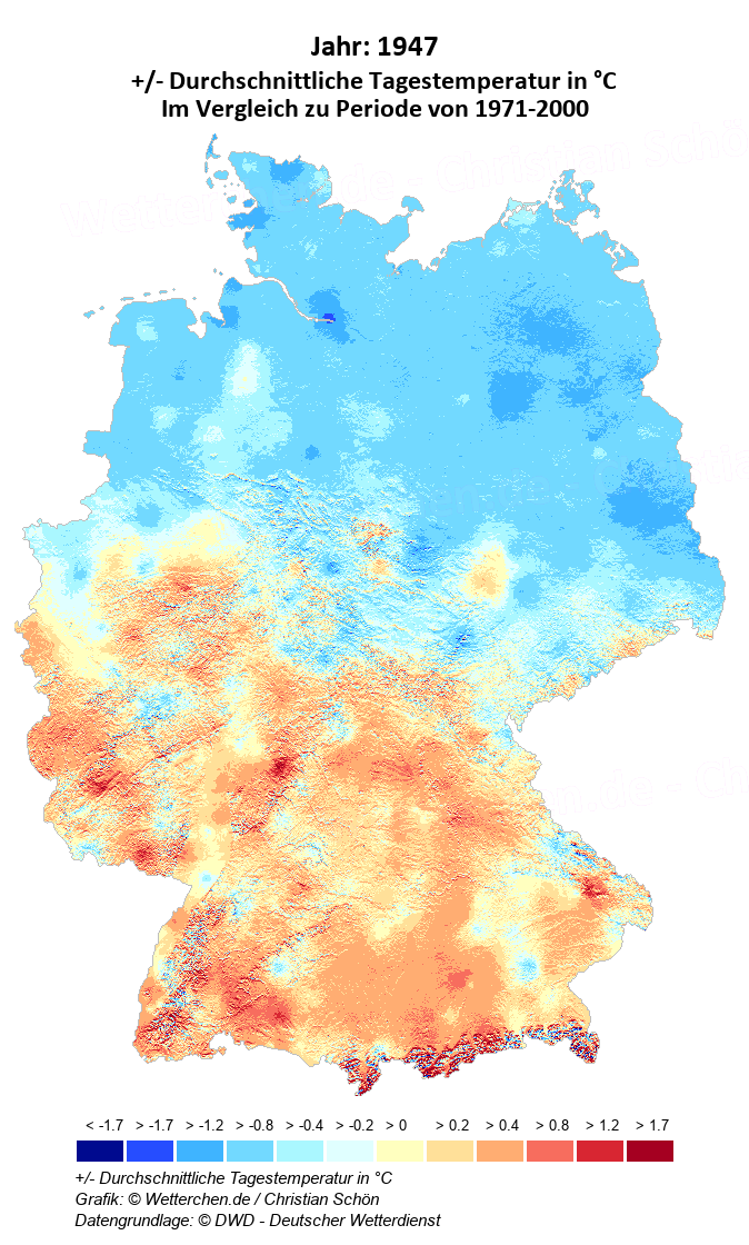 1947 - +/- Durchschnittliche Tagestemperatur in °C