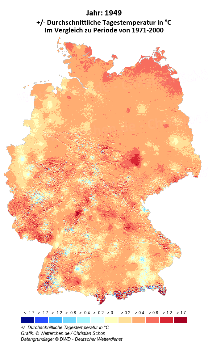 1949 - +/- Durchschnittliche Tagestemperatur in °C