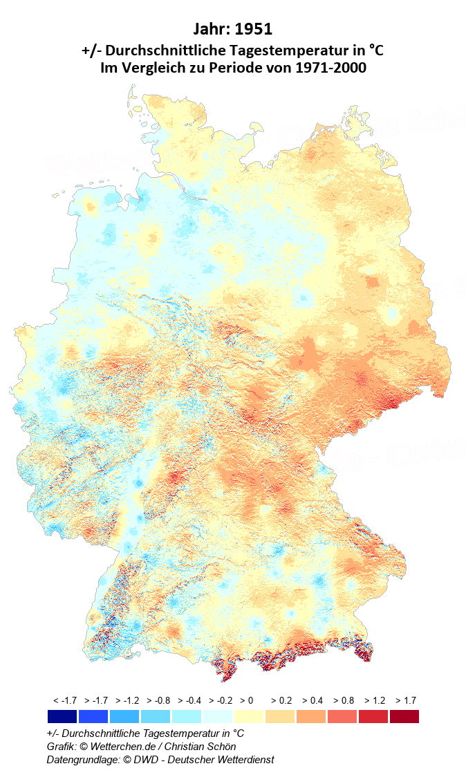 1951 - +/- Durchschnittliche Tagestemperatur in °C