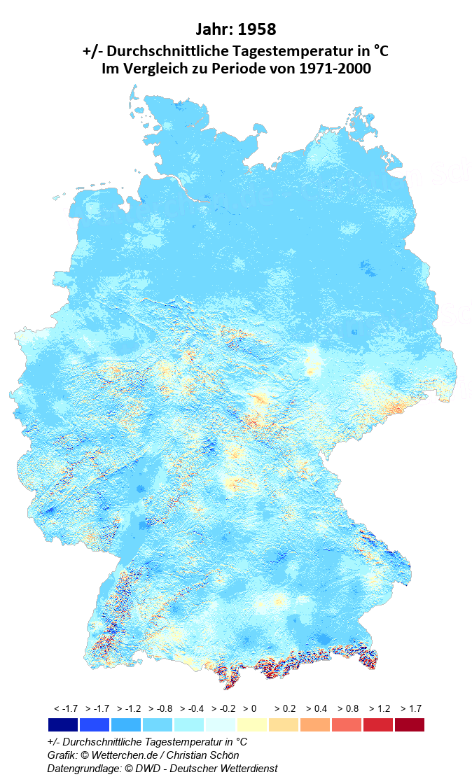 1958 - +/- Durchschnittliche Tagestemperatur in °C
