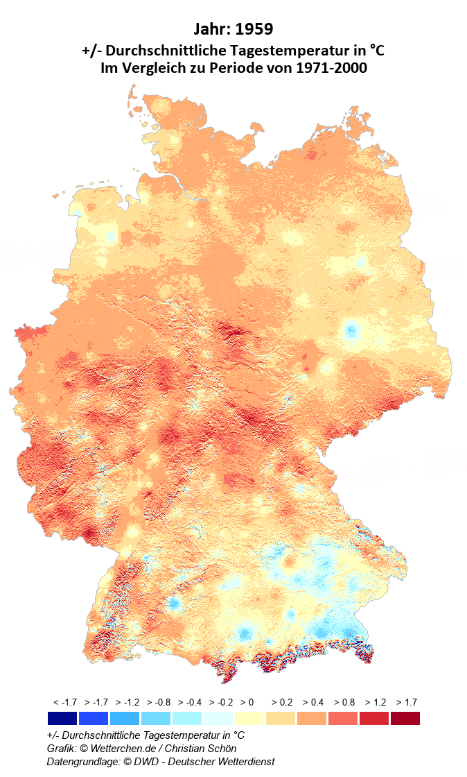 1959 - +/- Durchschnittliche Tagestemperatur in °C