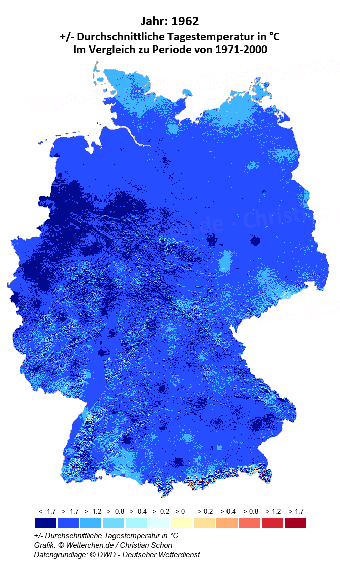 1962 - +/- Durchschnittliche Tagestemperatur in °C