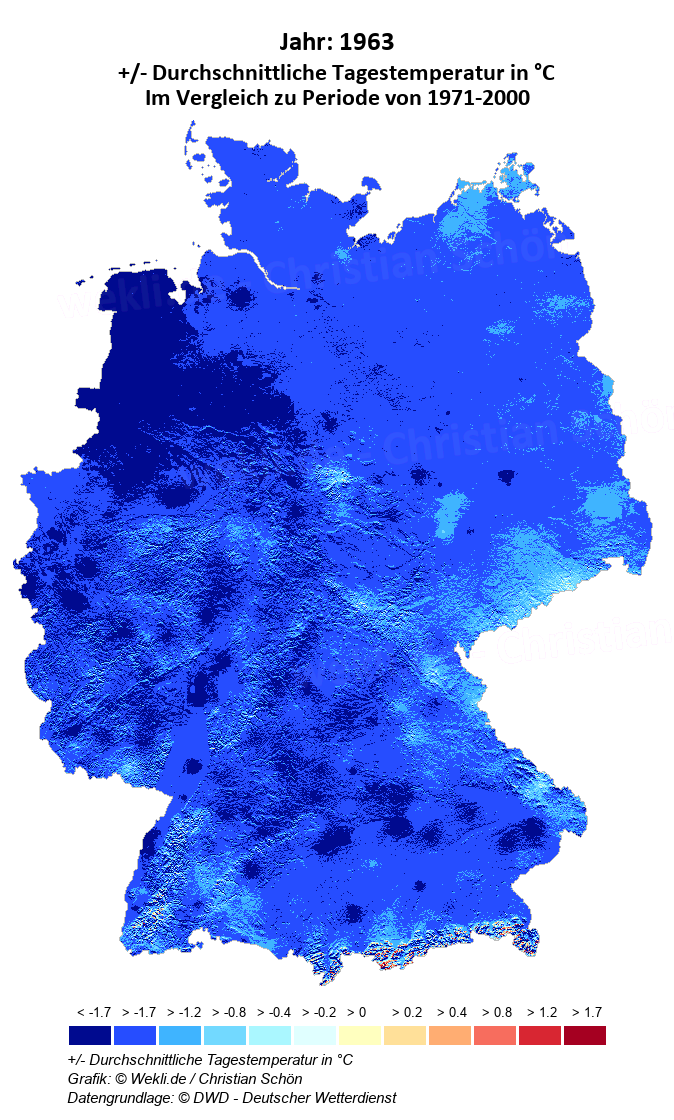 1963 - +/- Durchschnittliche Tagestemperatur in °C