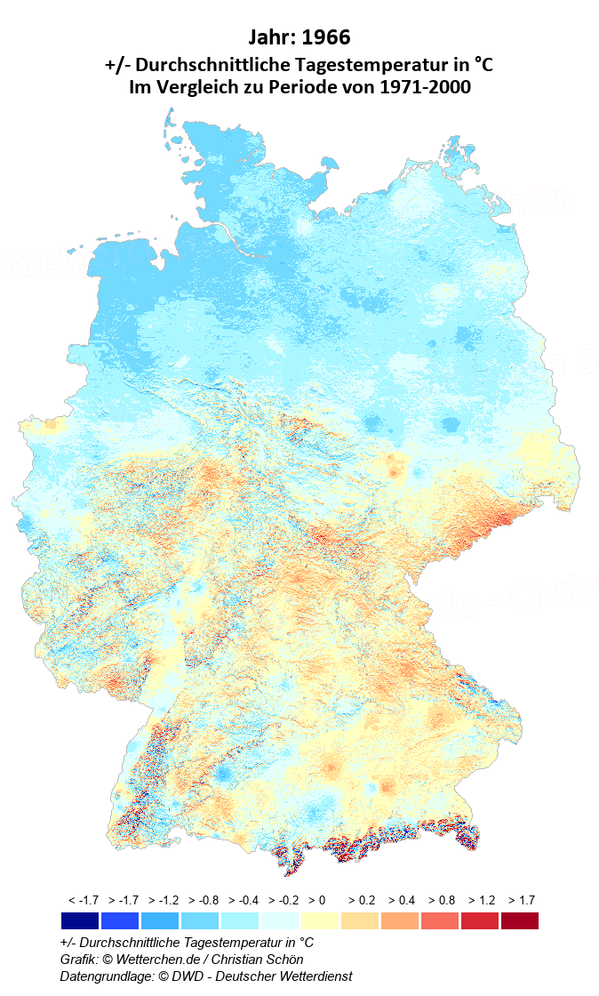 1966 - +/- Durchschnittliche Tagestemperatur in °C