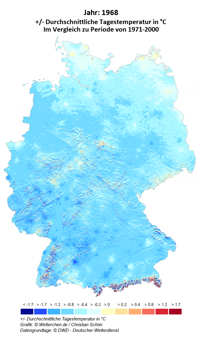 1968 - +/- Durchschnittliche Tagestemperatur in °C