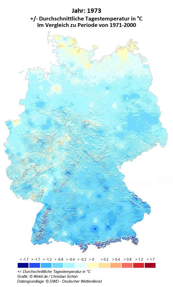 1973 - +/- Durchschnittliche Tagestemperatur in °C