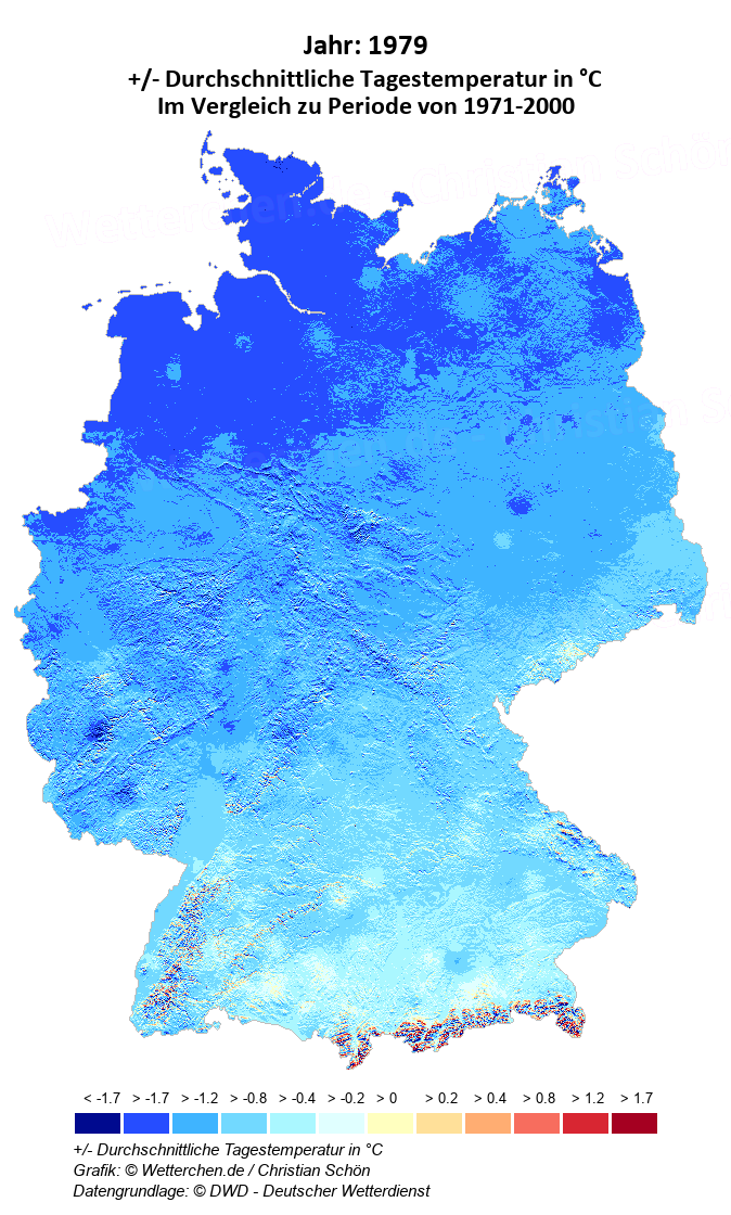 1979 - +/- Durchschnittliche Tagestemperatur in °C