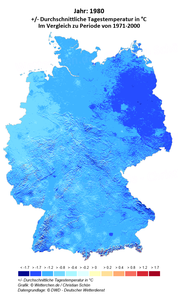 1980 - +/- Durchschnittliche Tagestemperatur in °C