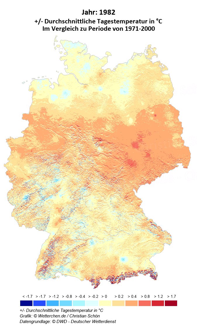1982 - +/- Durchschnittliche Tagestemperatur in °C