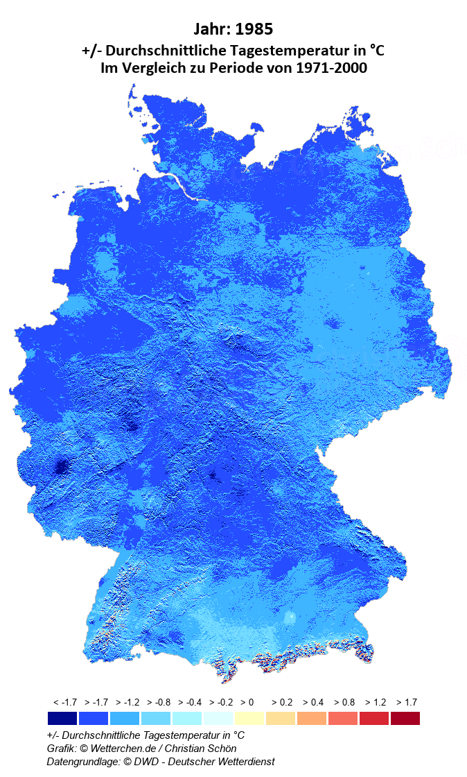 1985 - +/- Durchschnittliche Tagestemperatur in °C