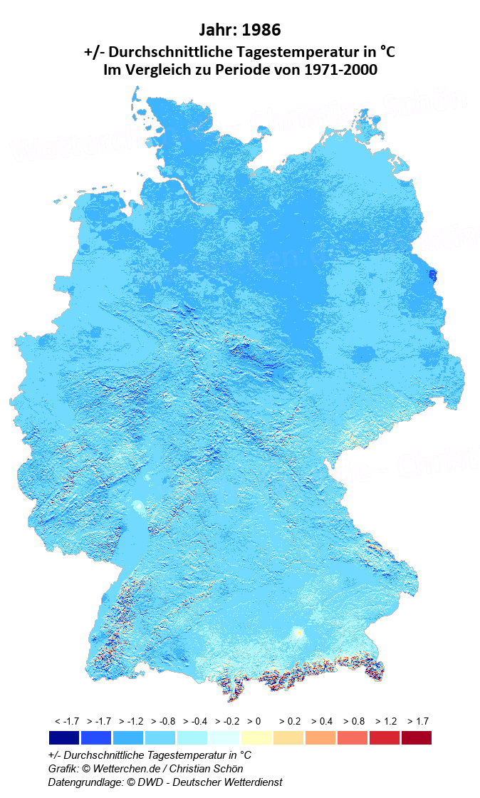 1986 - +/- Durchschnittliche Tagestemperatur in °C