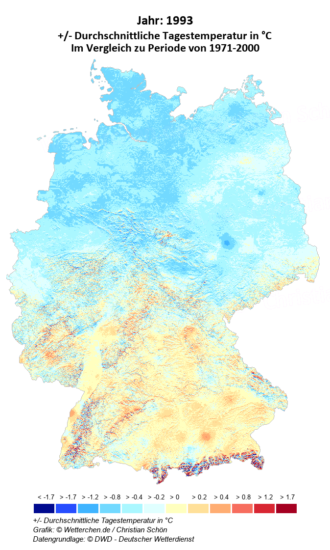 1993 - +/- Durchschnittliche Tagestemperatur in °C