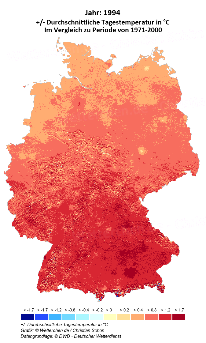 1994 - +/- Durchschnittliche Tagestemperatur in °C