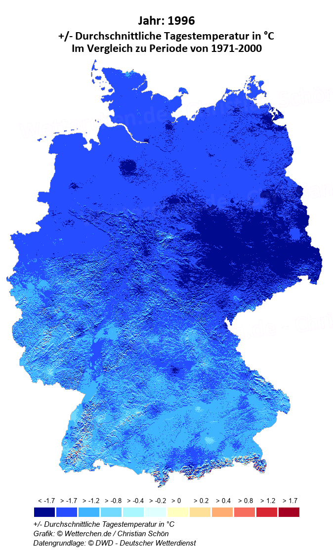 1996 - +/- Durchschnittliche Tagestemperatur in °C