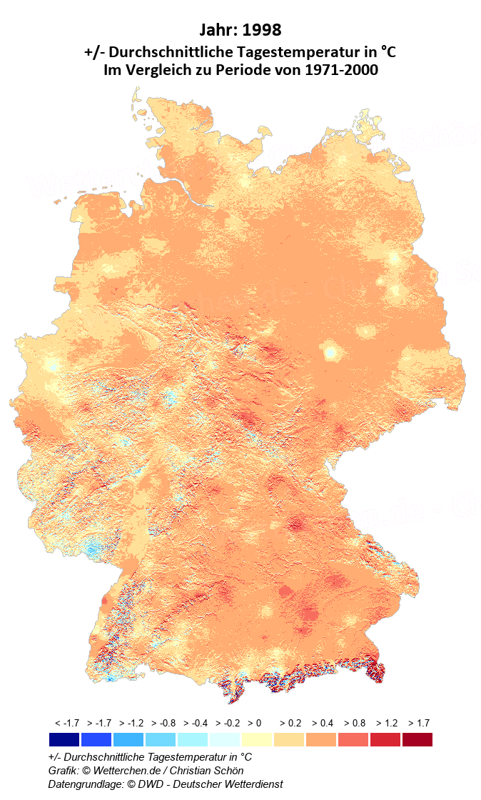 1998 - +/- Durchschnittliche Tagestemperatur in °C