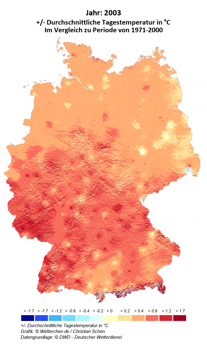 2003 - +/- Durchschnittliche Tagestemperatur in °C