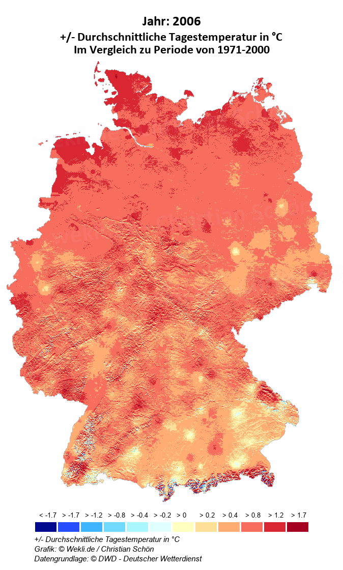 2006 - +/- Durchschnittliche Tagestemperatur in °C