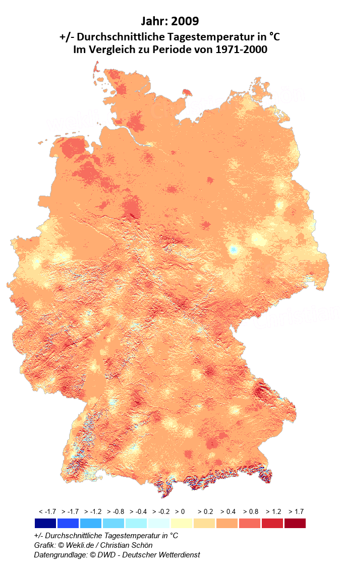 2009 - +/- Durchschnittliche Tagestemperatur in °C