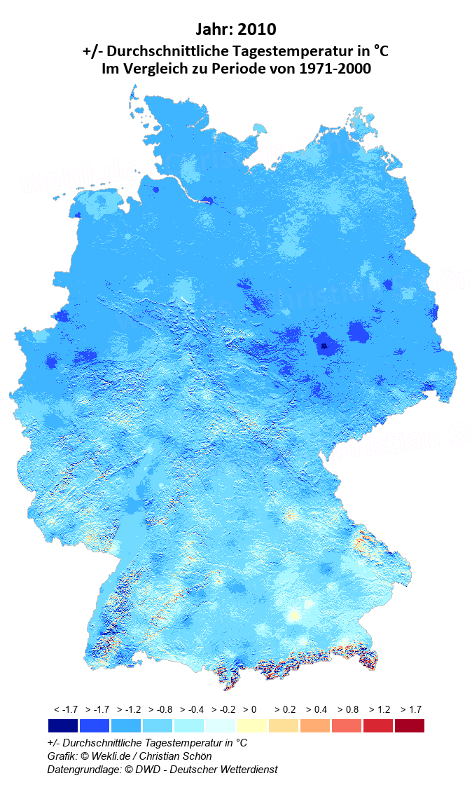 2010 - +/- Durchschnittliche Tagestemperatur in °C