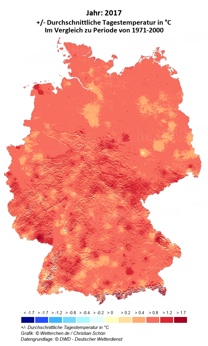 2017 - +/- Durchschnittliche Tagestemperatur in °C