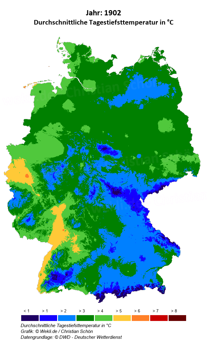 1902 - Durchschnittliche Tagestiefsttemperatur in °C