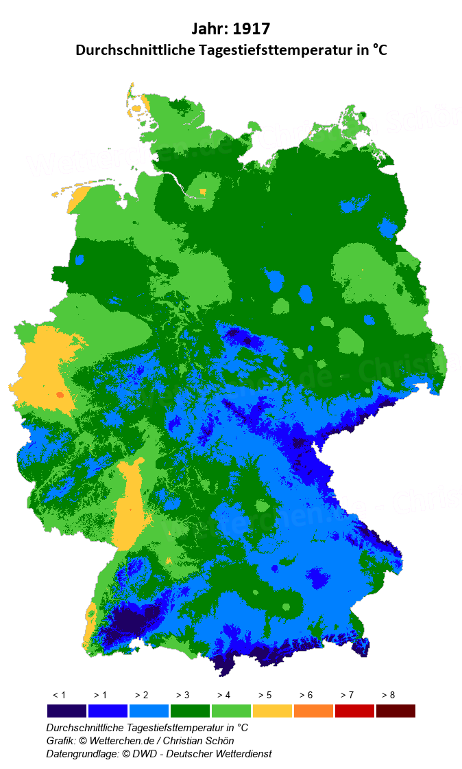 1917 - Durchschnittliche Tagestiefsttemperatur in °C