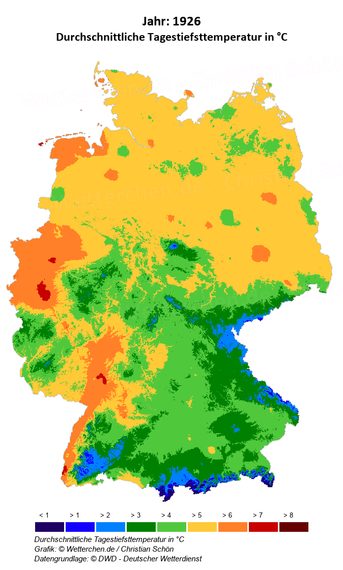 1926 - Durchschnittliche Tagestiefsttemperatur in °C