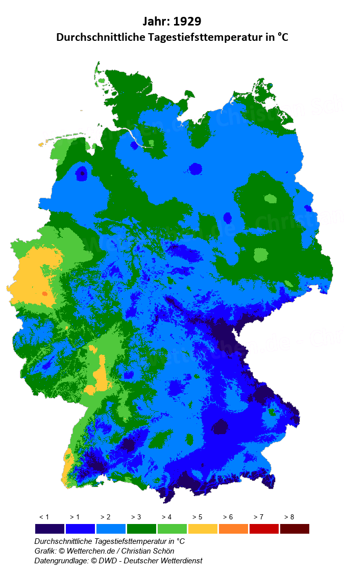 1929 - Durchschnittliche Tagestiefsttemperatur in °C
