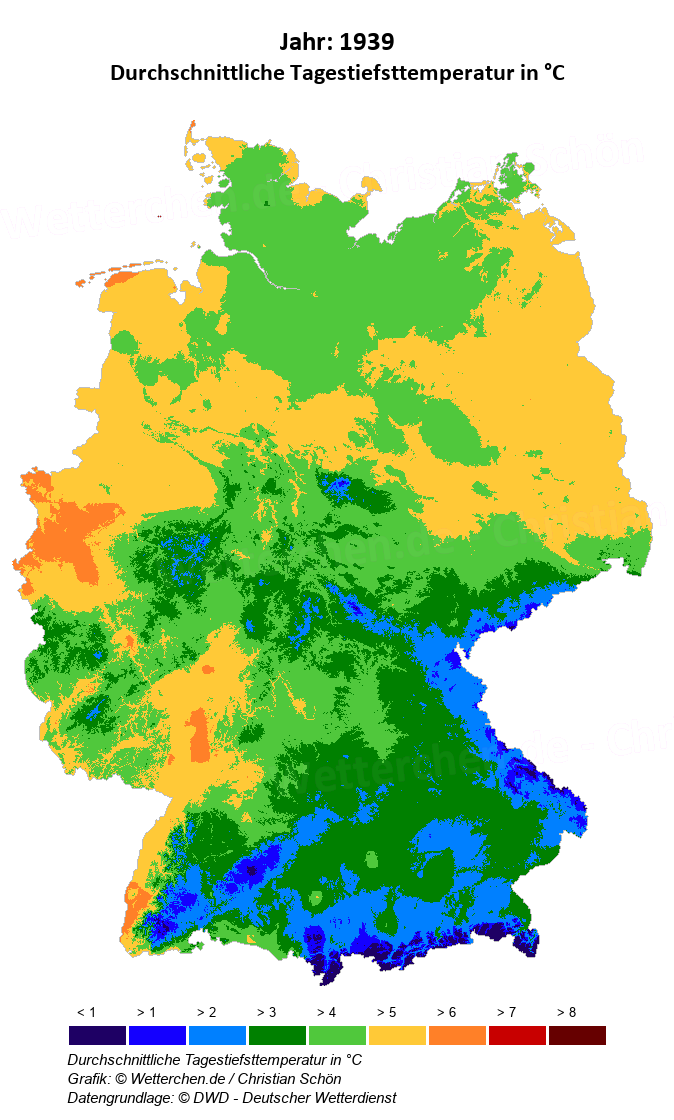 1939 - Durchschnittliche Tagestiefsttemperatur in °C