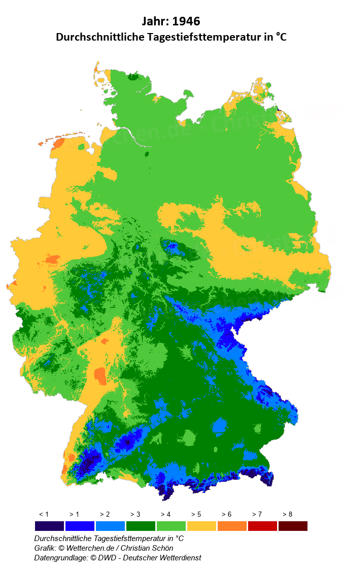 1946 - Durchschnittliche Tagestiefsttemperatur in °C