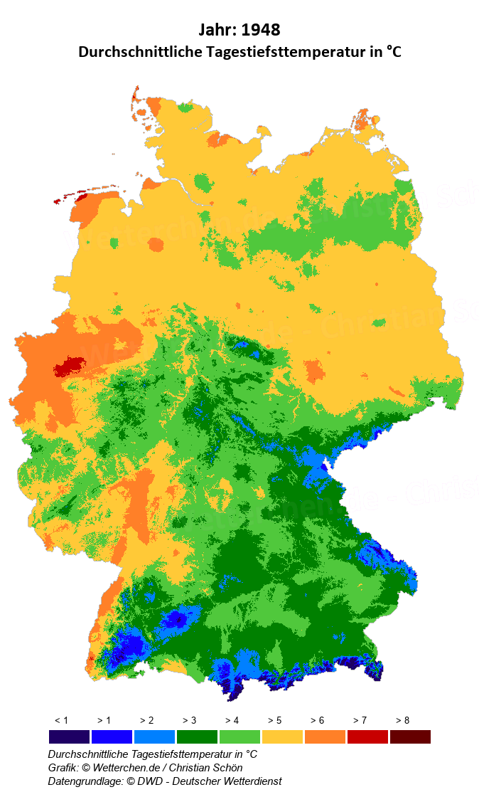 1948 - Durchschnittliche Tagestiefsttemperatur in °C