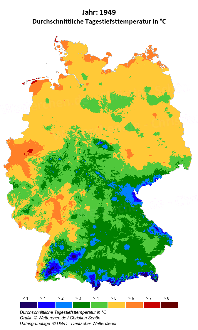 1949 - Durchschnittliche Tagestiefsttemperatur in °C