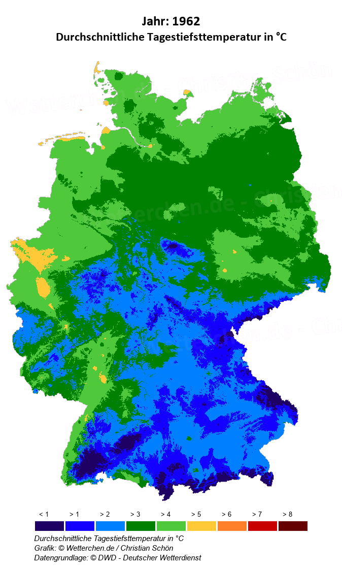 1962 - Durchschnittliche Tagestiefsttemperatur in °C