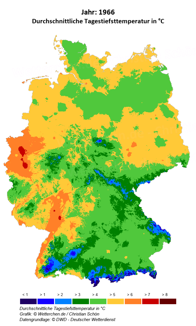 1966 - Durchschnittliche Tagestiefsttemperatur in °C