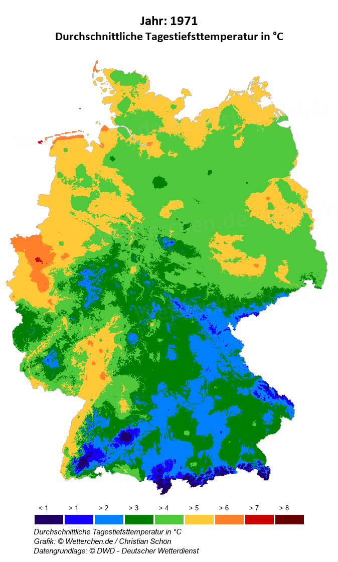1971 - Durchschnittliche Tagestiefsttemperatur in °C