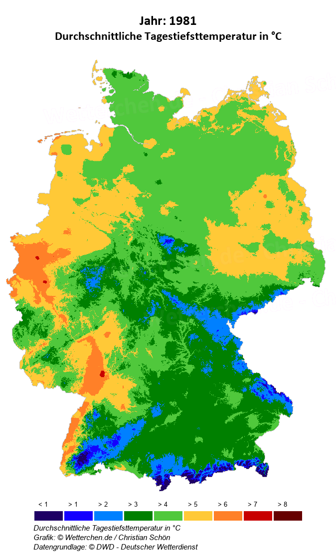 1981 - Durchschnittliche Tagestiefsttemperatur in °C