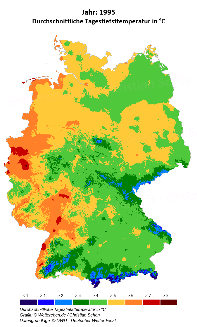 1995 - Durchschnittliche Tagestiefsttemperatur in °C