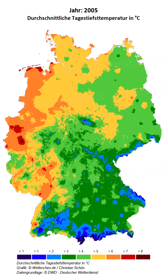 2005 - Durchschnittliche Tagestiefsttemperatur in °C