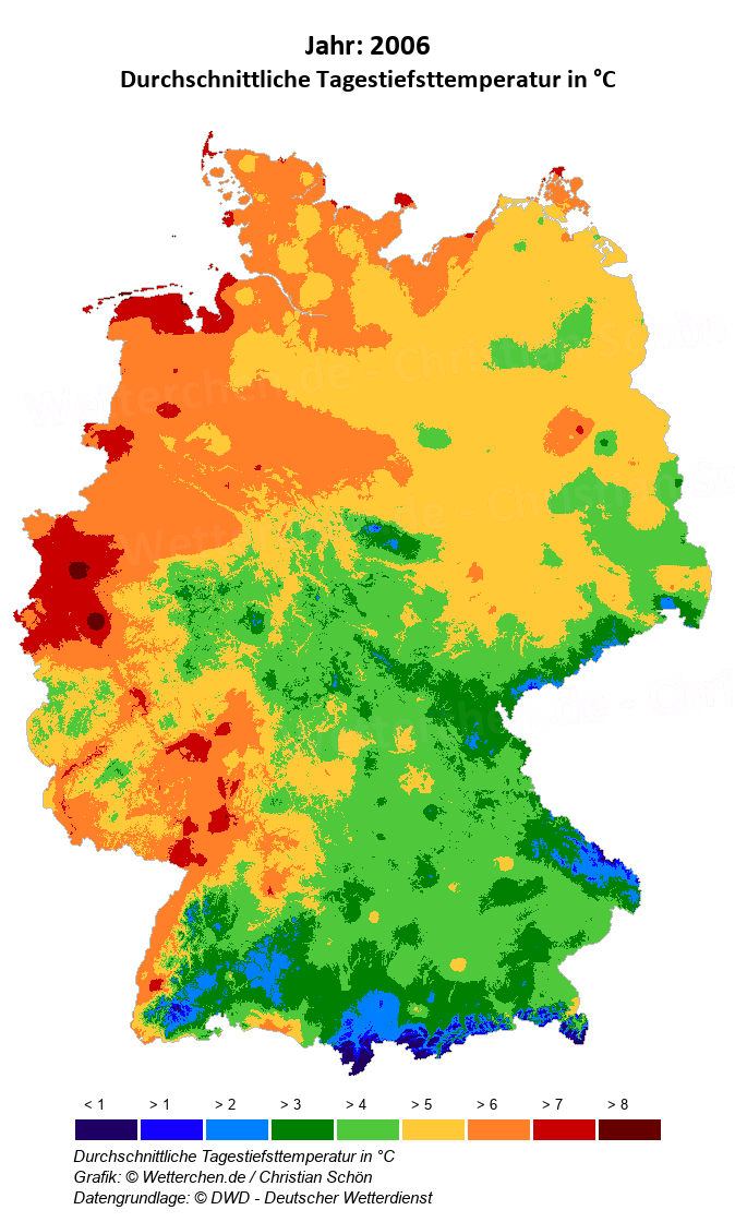 2006 - Durchschnittliche Tagestiefsttemperatur in °C