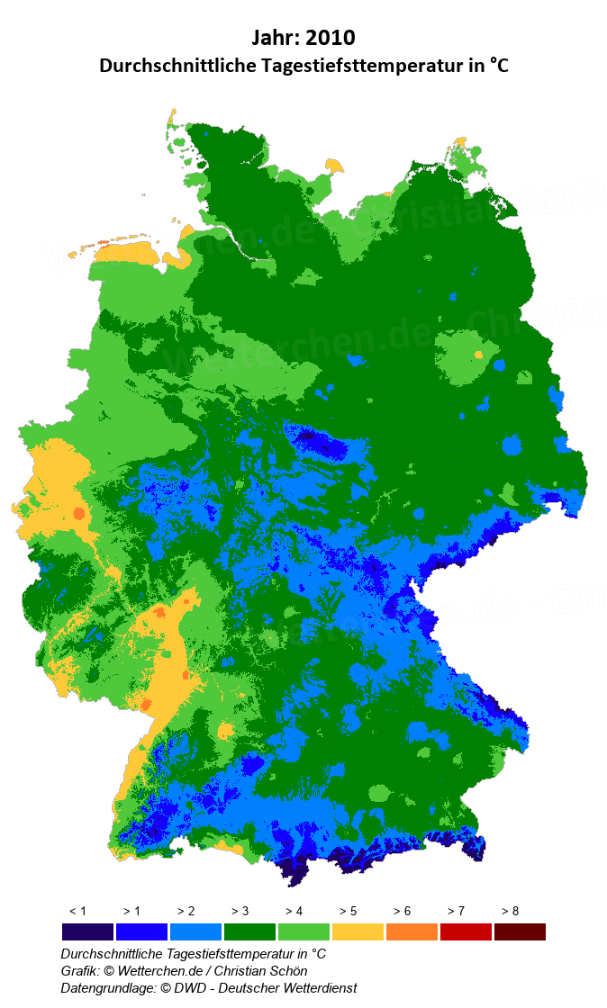 2010 - Durchschnittliche Tagestiefsttemperatur in °C