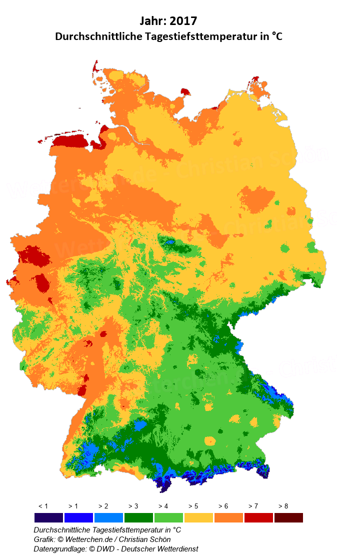 2017 - Durchschnittliche Tagestiefsttemperatur in °C