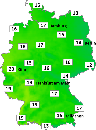 2019 - +/- Durchschnittliche Tagestiefsttemperatur in °C